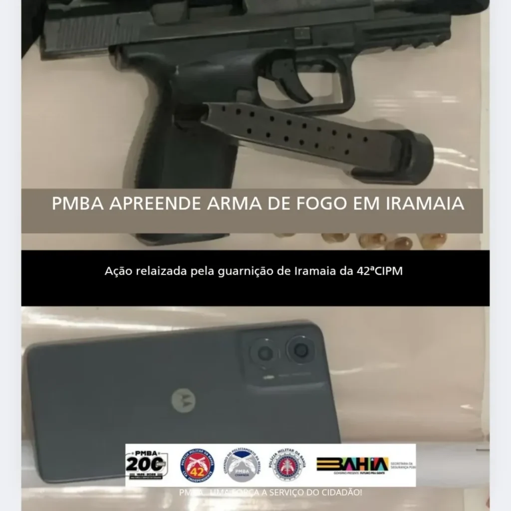 Uma ação eficiente da Polícia Militar resultou na apreensão de uma pistola 9mm e na recuperação de uma motocicleta roubada, na noite da última terça-feira (11), no município de Iramaia, região da Chapada Diamantina.