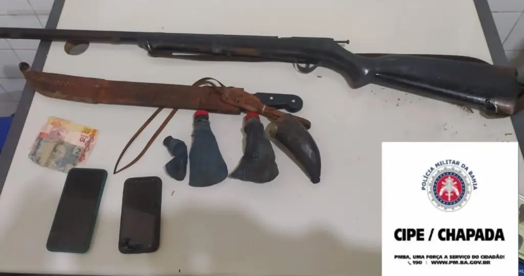 A guarnição adentrou a mata no intuito de encontrar o suspeito, após horas seguindo os rastros, conseguiu êxito na busca e a captura do indivíduo em posse de uma espingarda carregada e um facão.