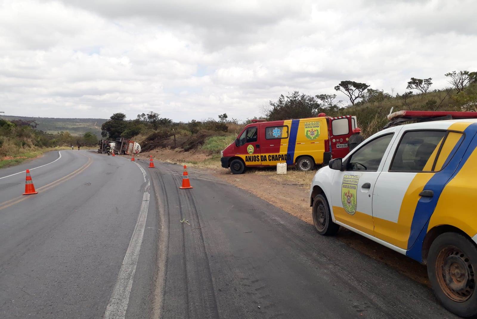 Na manhã da última sexta-feira (01/10), a equipe de plantão voluntários Anjos Da Chapada Diamantina, foram acionados para um acidente, pois havia um tombamento com carreta que fazia transporte de Óleo Diesel no morro do Pai Inácio na Chapada Diamantina, mais precisamente no km 348 da BR-242.
