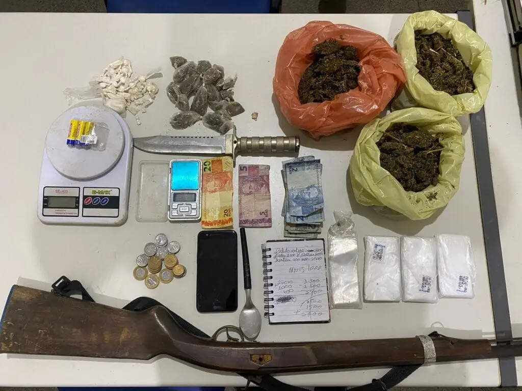 Após a fuga do suspeito, foi feito uma varredura no local, sendo apreendido o seguinte material: