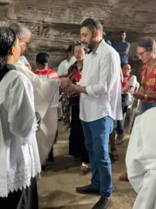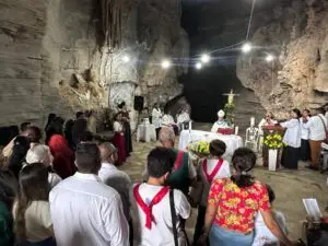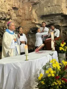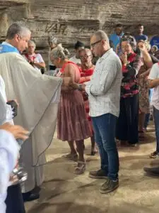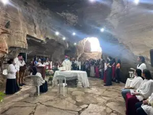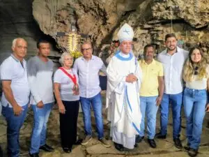 Buscando ampliar o turismo religioso no Município de Ibiquera, Bispo Dom Estevam celebra missa na Gruta da Lapinha