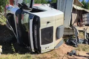 Caminhão tomba na BA-142 em Ibicoara, após motorista de 28 anos perder o controle da direção