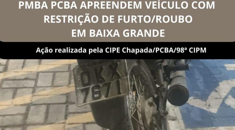 Leia mais...Na manhã desta segunda-feira (08/09), policiais militares do Pelotão de Tanhaçu (4ª CIA/24º BPM) apreenderam uma motocicleta Honda CG Titan,