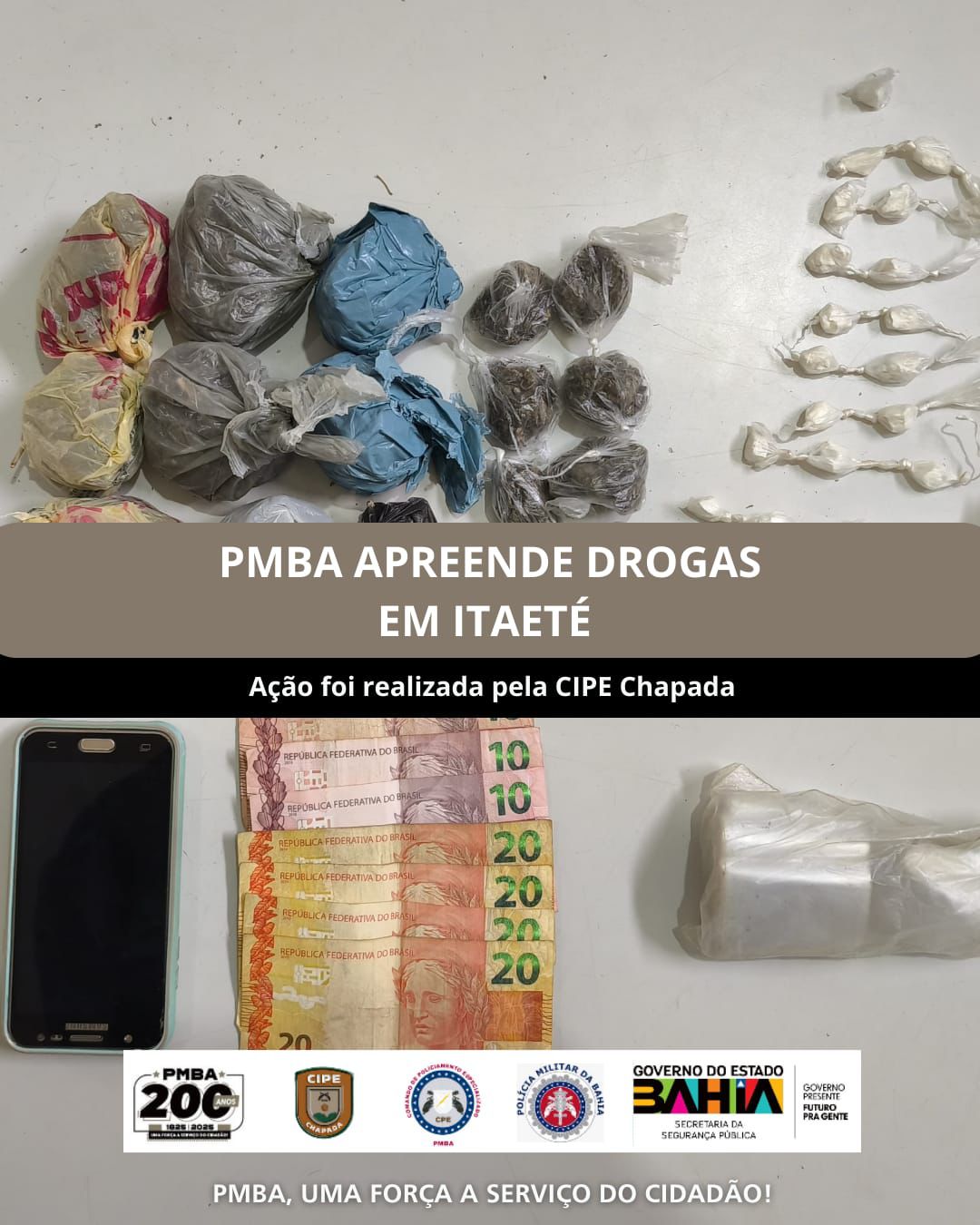 Uma ação da Companhia Independente de Policiamento Especializado (CIPE-Chapada) resultou na apreensão de drogas e na condução de um suspeito à delegacia na tarde desta segunda-feira (09), no município de Itaeté, na Chapada Diamantina. A ocorrência foi registrada por volta das 13h, no bairro Canabrava, após denúncias de movimentação típica do tráfico de entorpecentes.