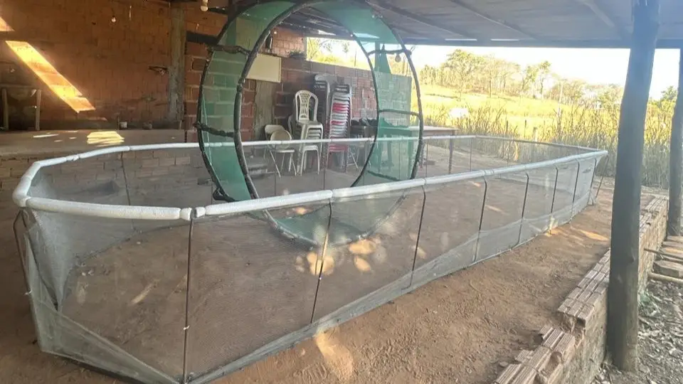 A equipe da CIPPA realizava rondas de rotina quando foi abordada por um transeunte que denunciou a existência de uma residência onde ocorria a criação e uso de galos em rinhas, prática proibida pela Lei de Crimes Ambientais (Lei 9.605/98, Art. 32). Ao averiguar a denúncia, os policiais encontraram uma estrutura montada para rinhas, com arenas fixas e móveis, além de 26 galos em condições de maus-tratos, muitos com esporões mutilados, o que configura crime ambiental.
