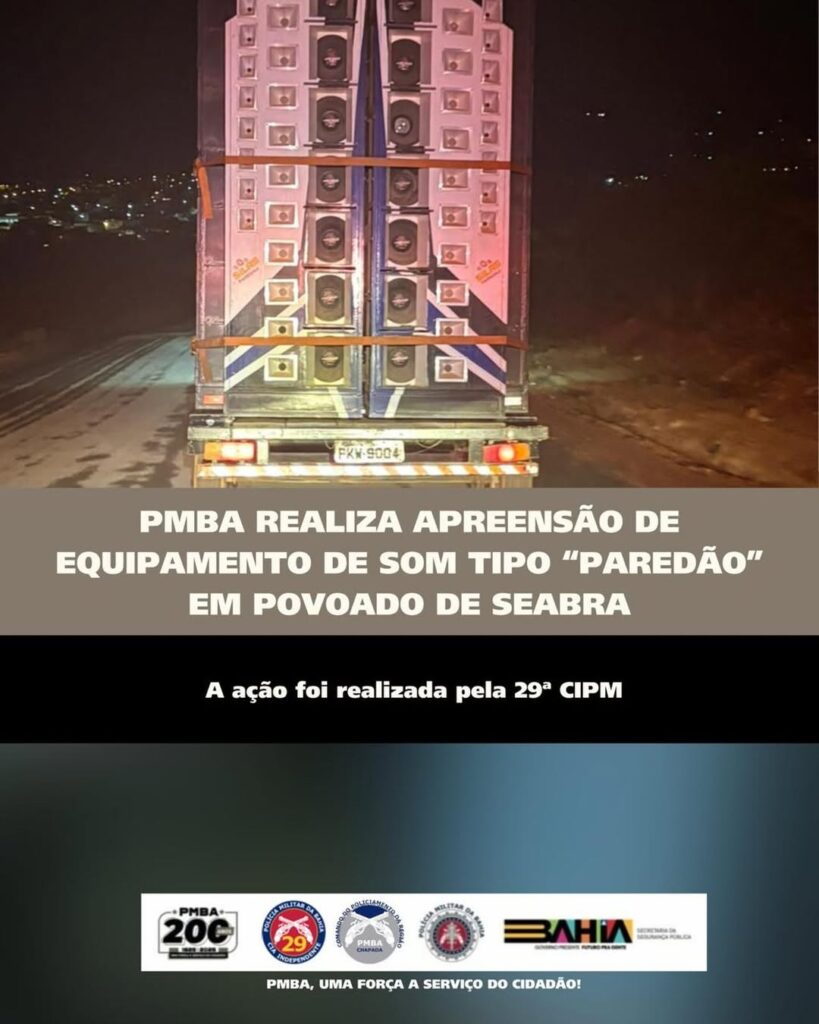Diante da irregularidade, os policiais procederam com a apreensão de um veículo, um reboque e do equipamento sonoro tipo paredão utilizado no evento. Todo o material foi apresentado na Delegacia Territorial de Seabra para a adoção das medidas cabíveis, conforme o artigo 42 da Lei de Contravenções Penais.