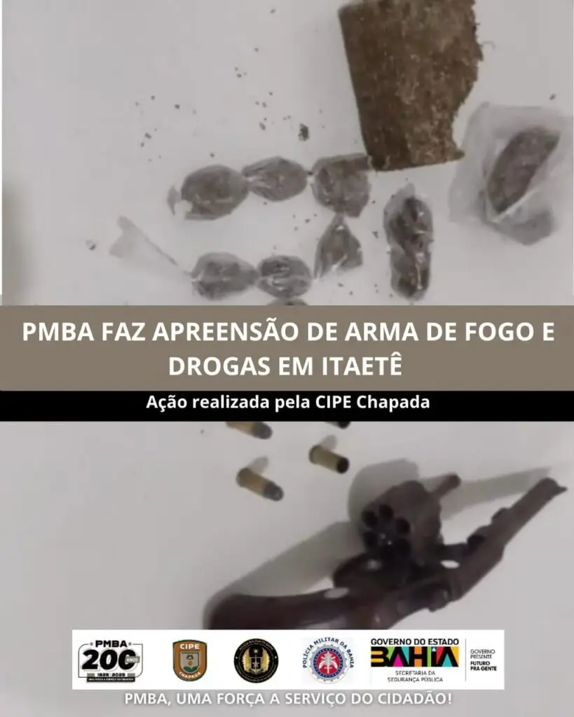 Homens armados disparam contra a polícia durante patrulhamento em Itaetê; arma e drogas são apreendidas