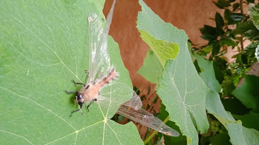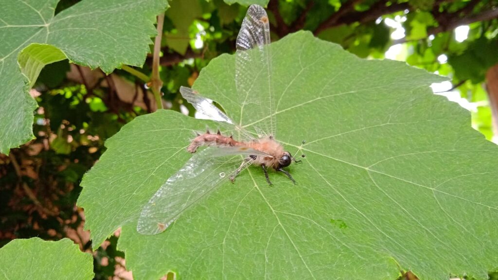 Entre as características observadas estão o corpo com pequenos pelos, asas que lembram as de libélulas e um formato que mistura aspectos de diferentes insetos, como zangões. A moradora também destacou detalhes curiosos, como uma estrutura semelhante a um “bigode”, além do formato dos olhos e das