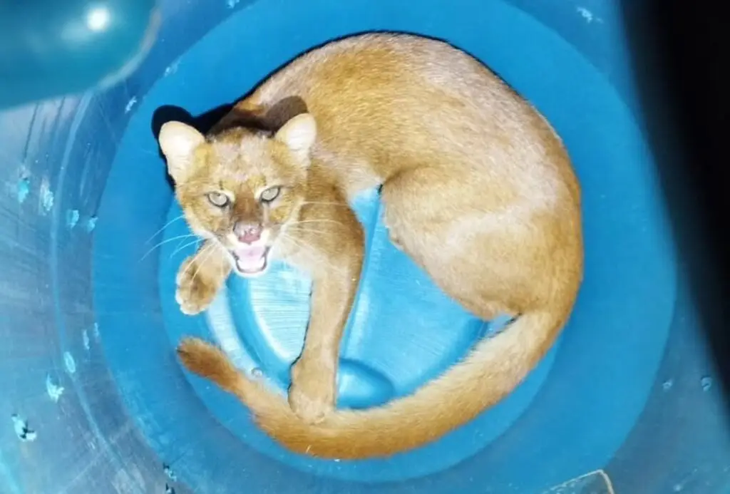 Jaguarundi é resgatado pelo 11° BBM em quintal de instituição religiosa em Itaberaba
