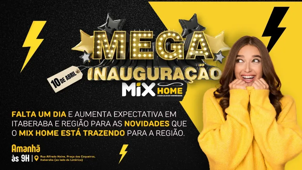 A Loja da Mix Home, a sua loja de variedades, será inaugurada nesta quarta-feira, dia 10, às 09h. Falta um dia e aumenta ainda mais a expectatica em itaberaba e região para as novidades que o mix home está trazendo para à região.