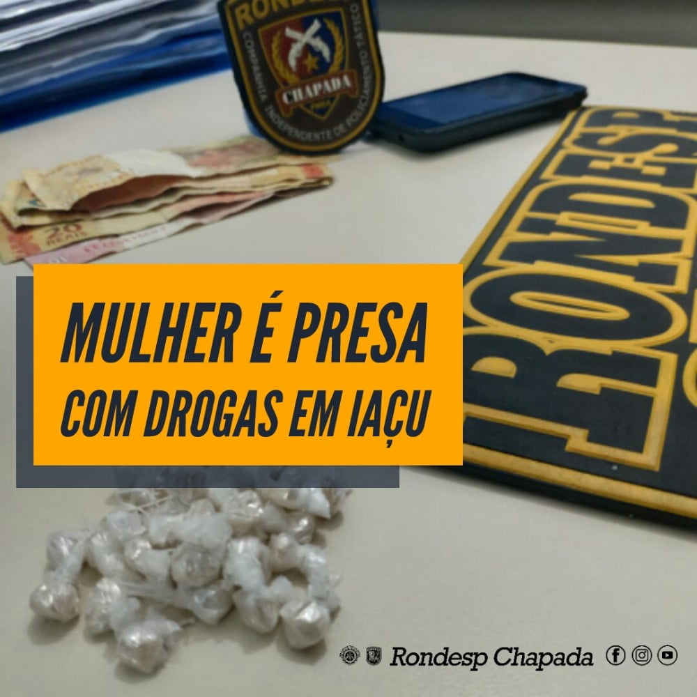 Uma mulher foi presa por tráfico de drogas na tarde desta terça-feira (12/03) após ser flagrada com 39 pedras de crack durante ações da Rondesp Chapada, unidade pertence ao Comando de Policiamento da Região da Chapada, na cidade de Iaçu – BA.