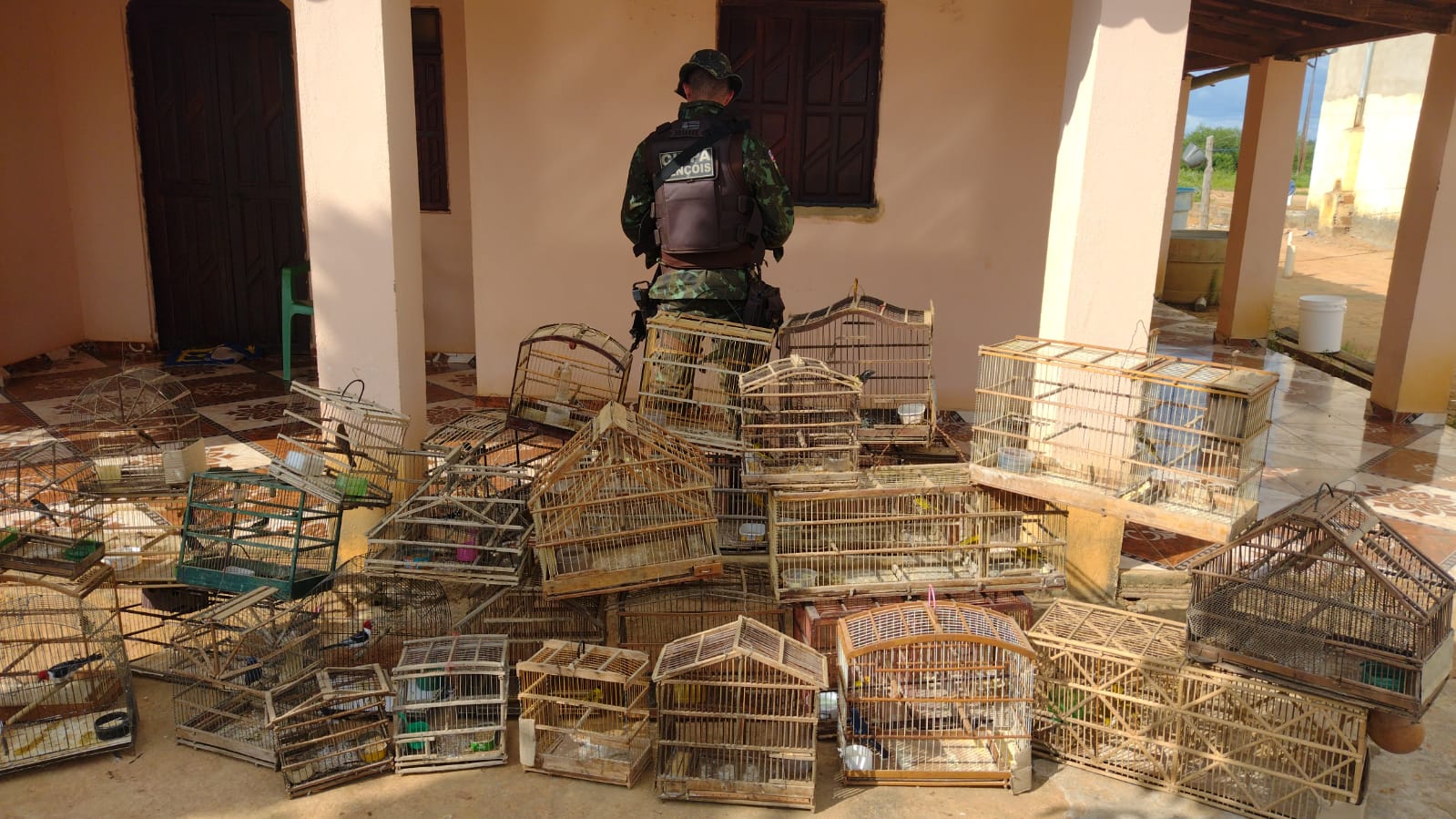 Cerca de 86 aves e 79 gaiolas foram apreendidas por equipes da Companhia Independente de Polícia de Proteção Ambiental (Cippa) de Lençóis, durante ronda rural e após denúncia. As ações ocorreram nas cidades de Marcionílio Souza e Itaetê, na região da Chapada Diamantina, sexta-feira (28).