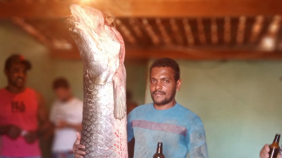 Pirarucu com mais de 70 Kg é pescado no Rio Paraguaçu em Nova Redenção