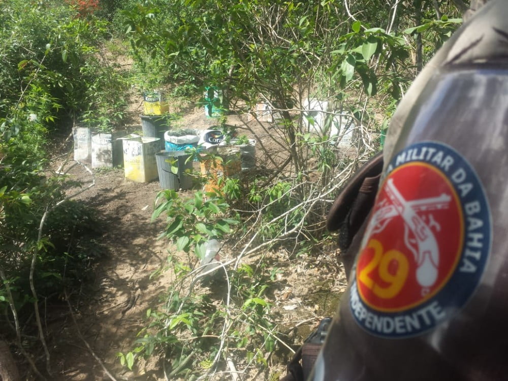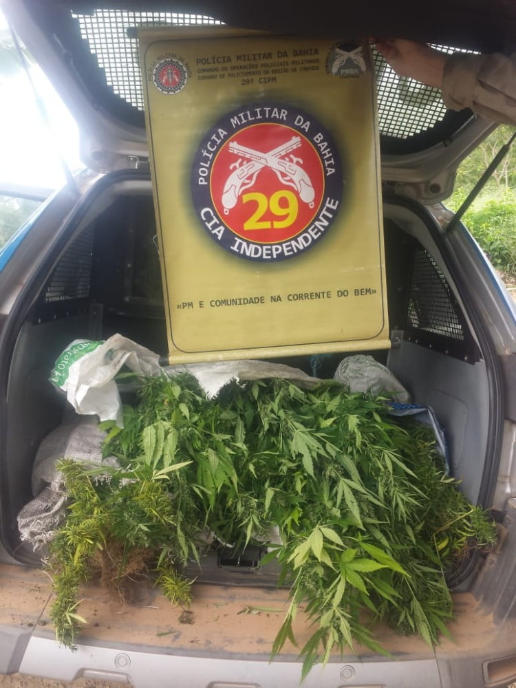 Plantação de maconha foi localizada por policiais da 29ª Companhia Independente da Polícia Militar (CIPM/Seabra) após denúncia anônima de um popular. Os 71 pés estavam em caqueiros (vasilhas de plantio) em um terreno baldio no povoado Prata de Baixo, zona rural de Seabra.