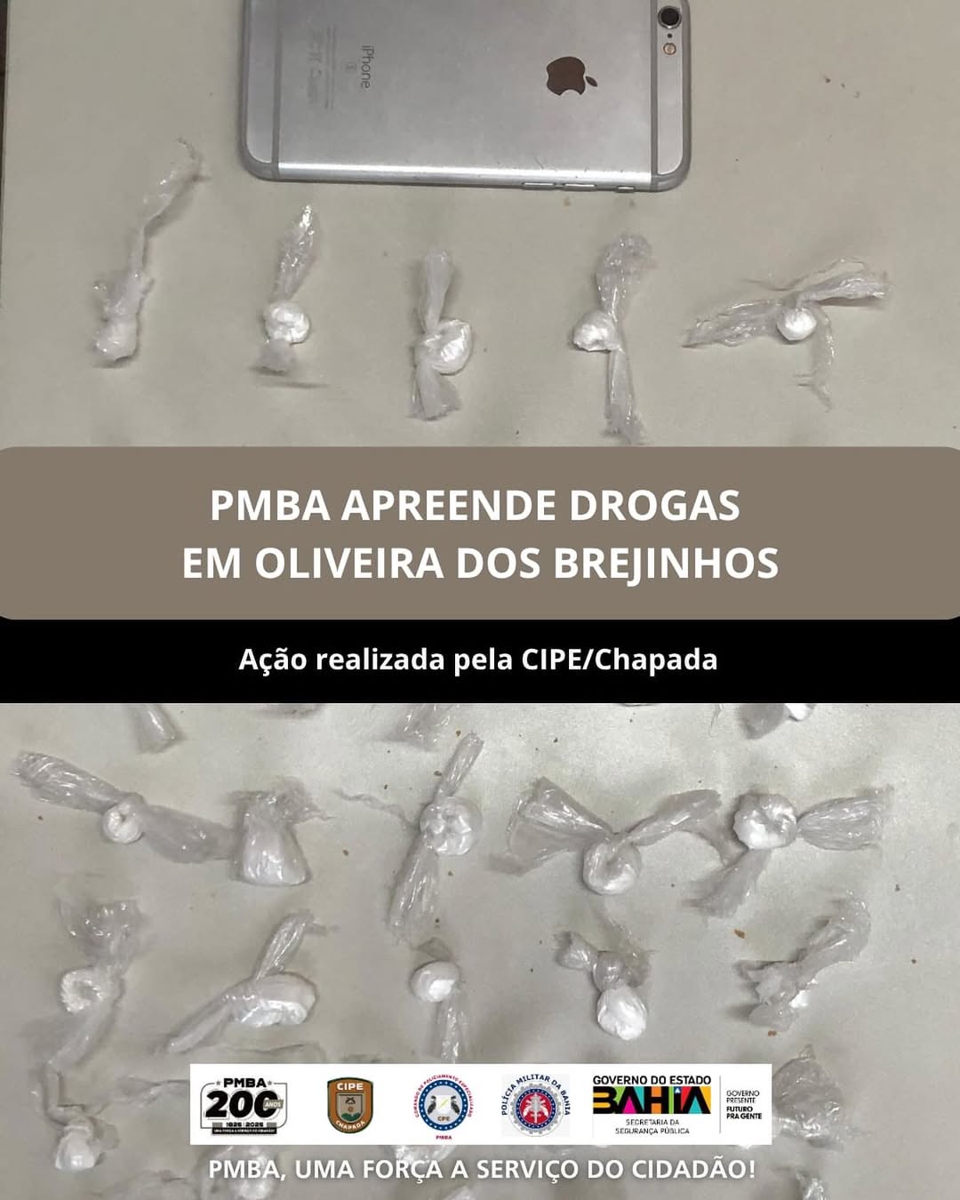 Na tarde desta segunda-feira (20), policiais da CIPE/Chapada, com apoio da 28ª Companhia Independente da Polícia Militar (CIPM), apreenderam porções de substância análoga à cocaína durante uma ação de patrulhamento especializado no povoado de Beira Rio, município de Oliveira dos Brejinhos, na Chapada Diamantina.