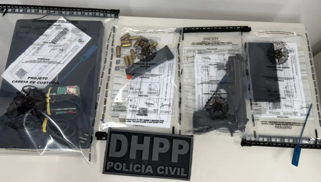 Com o cumprimento do mandado de prisão, o PM será submetido aos exames de lesões e encaminhado para o Batalhão de Choque da Polícia Militar, onde ficará custodiado à disposição da Justiça. Uma pistola .40, um notebook e um celular foram apreendidos durante a ação e passarão por perícia no Departamento de Polícia Técnica (DPT).