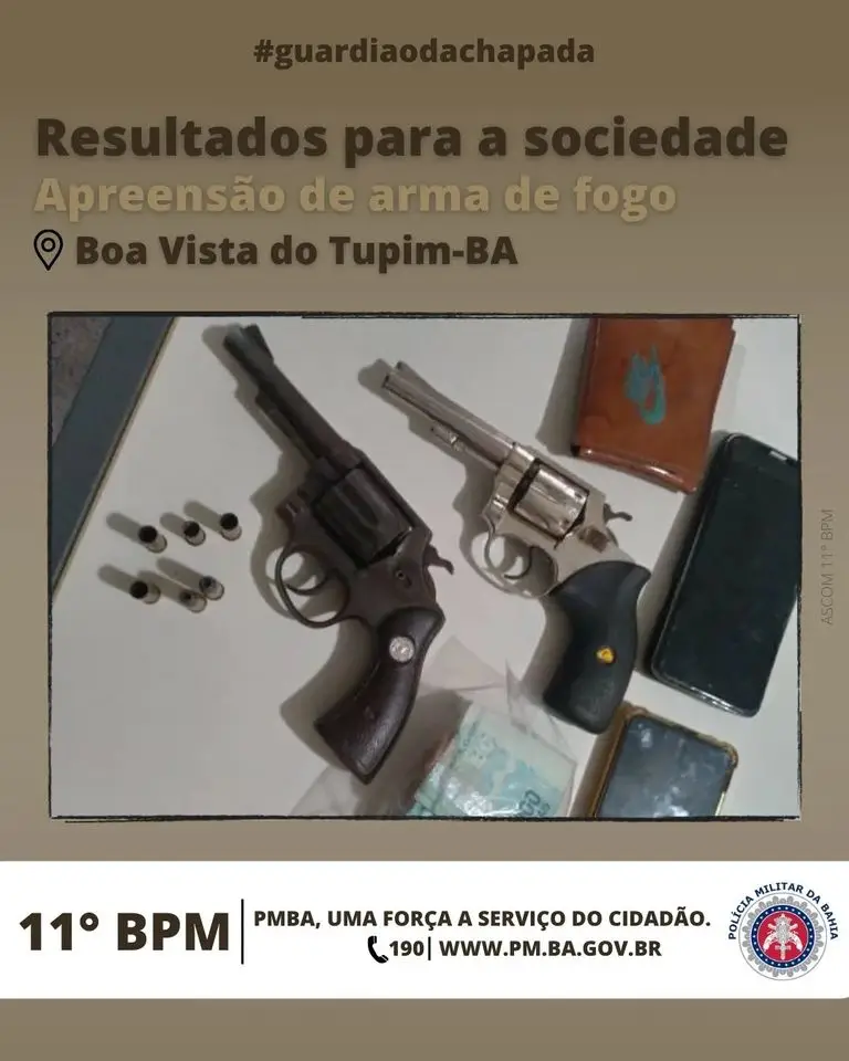 Chegando a Unidade hospitalar, identificaram um dos envolvidos, acompanhado da namorada, ao procederem com a busca, segundo a polícia, na bolsa dela foram encontrados: 01 revólver Taurus .38, com 4 munições deflagradas e 2 intactas; 01 revólver Smith and Wesson .32; 01 celular Samsung Galaxy A21S; 01 celular LG k12; R$ 1899,40 numa carteira. O outro indivíduo foi transferido para o Hospital Regional em Itaberaba, em virtude da gravidade dos ferimentos.