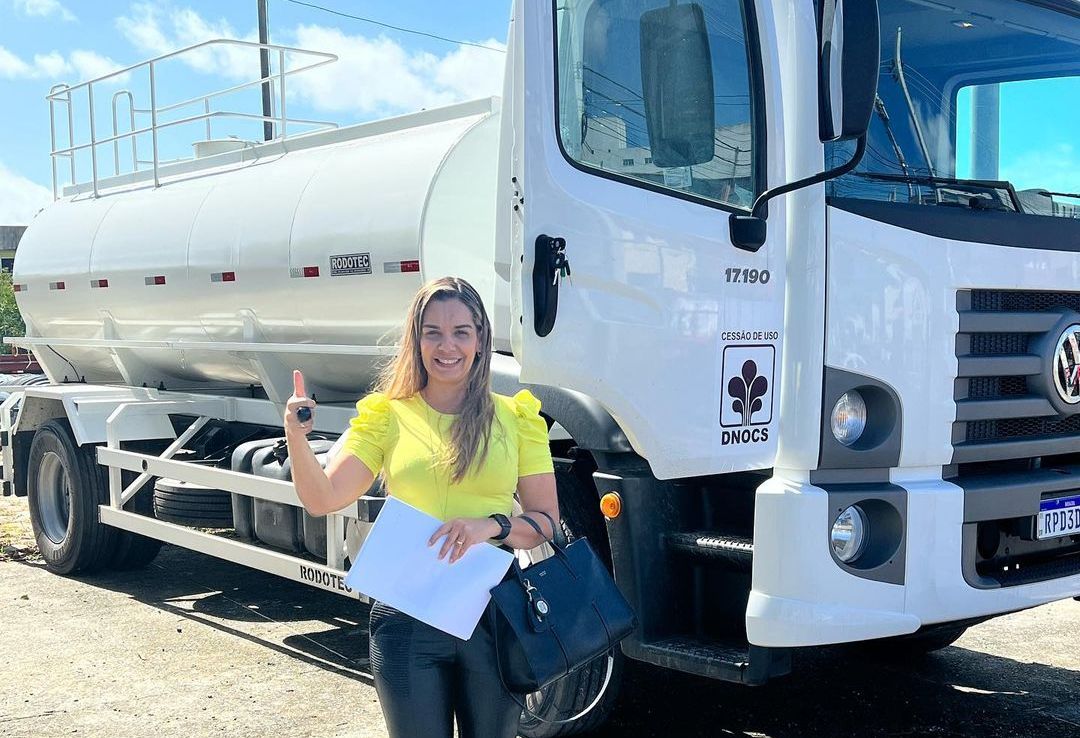 Prefeita de Lençóis recebe caminhão-pipa que ampliará abastecimento na zona rural do município