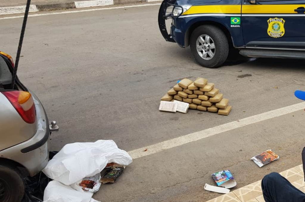 A Polícia Rodoviária Federal (PRF) apreendeu na tarde desta terça-feira (24), aproximadamente 27 quilos de substância com características semelhantes à maconha e mais 2,2 de produto análogo a pasta-base cocaína, que estavam escondidos no porta-malas do veículo FIAT/Pálio EX.