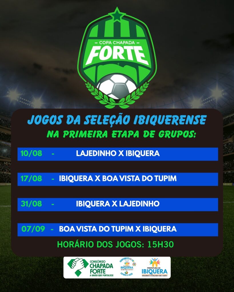 A emoção do futebol está de chegando, e a Seleção Ibiquerense já está pronta para representar o município com garra, paixão e muito talento dentro das quatro linhas. A equipe estreia na 1ª fase da Copa Chapada Forte no próximo dia 10 de agosto, prometendo grandes momentos para os torcedores que sempre fazem a diferença nas arquibancadas.