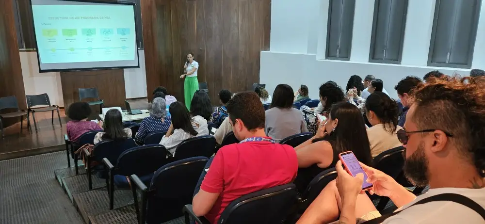 Na plateia, as ações de PSA realizadas pela Sema repercutiram positivamente, gerando o interesse do Arquiteto Urbanista, Adriano Deiró, que está desenvolvendo um projeto para preservação na Reserva Sapiranga, no litoral norte do estado. “Eu, em 2006, morei aqui em Lençóis, trabalhei na fiscalização da requalificação do patrimônio histórico completo da cidade, que envolve, inclusive, o prédio em acontece esse evento. E desde lá eu não deixei de me envolver nas causas ambientais, de saneamento e de urbanismo. Hoje estou desenvolvendo um projeto de preservação em Sapiranga e fiquei muito entusiasmado e cheio de perspectivas com as possibilidades apresentadas aqui pela Luana e a Marcelle, com várias possibilidades de arranjos na esfera do PSA”.