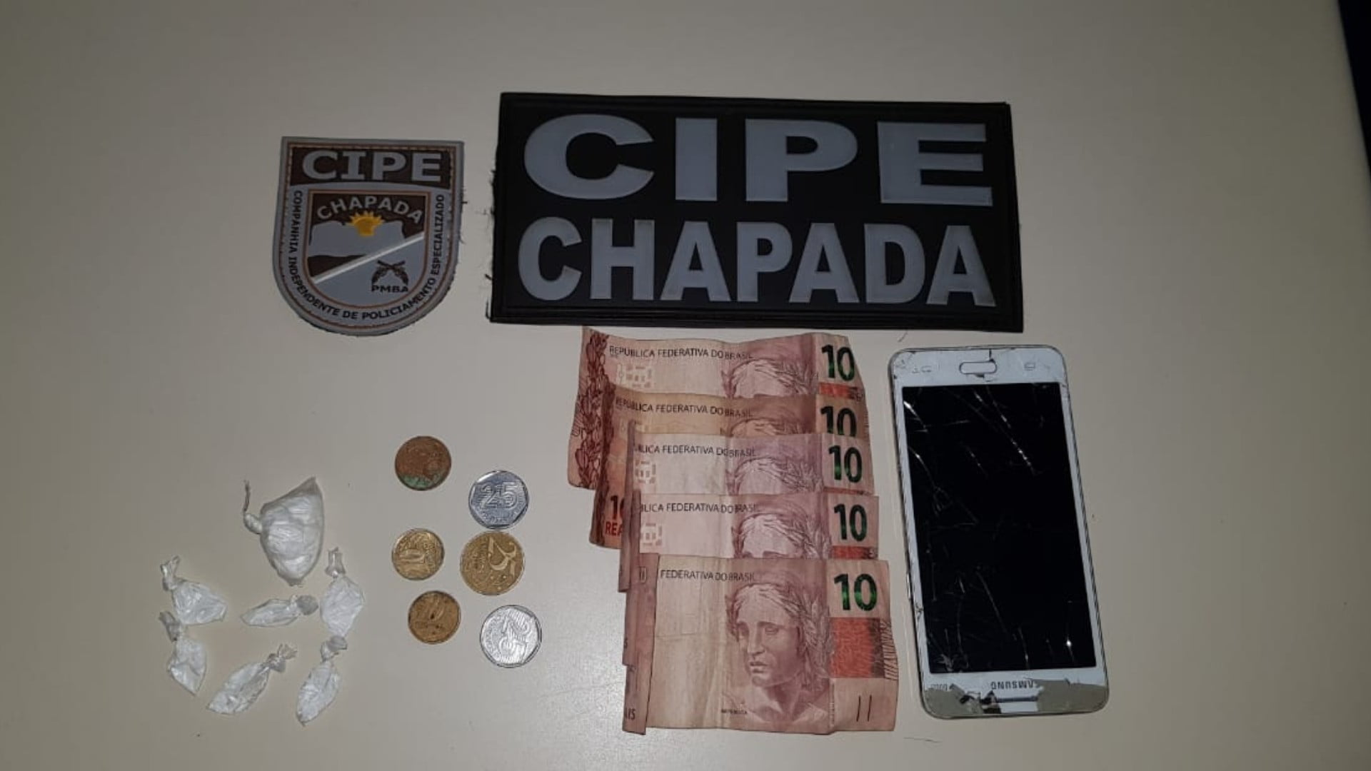 Durante patrulhamento na cidade de Palmeiras na Chapada Diamantina por volta das 17hrs de sexta-feira (03/05), a guarnição da Cipe Chapada recebeu informações que um indivíduo conhecido por vulgo Tão, contumaz na prática de roubos e tráfico, encontrava-se no bairro Populares, comercializando drogas.