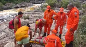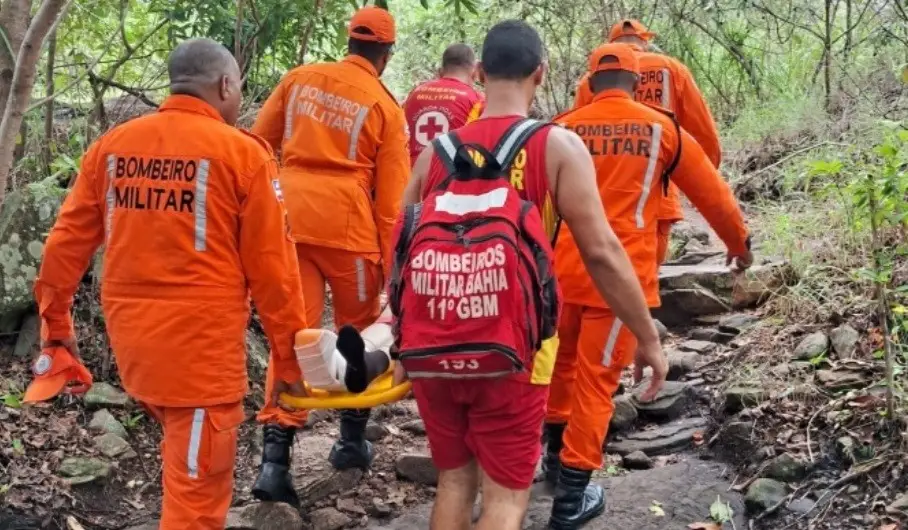 Turista se lesiona em trilha e é resgatada por bombeiros militares nas proximidades do Rio Mucugezinho em Lençóis BA