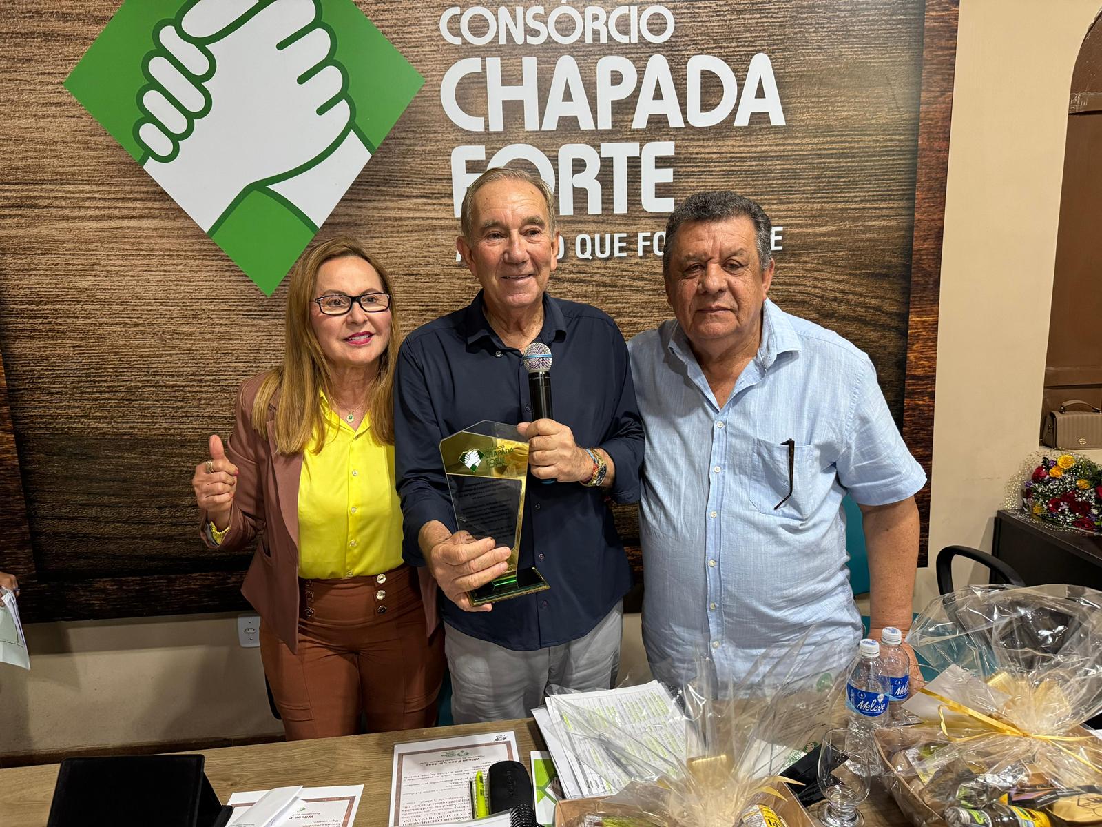 Um dos momentos mais marcantes da assembleia foi a homenagem aos fundadores do Consórcio Chapada Forte, neste ato representadas por Moema Marciel ex-prefeita de Lençóis, Arnaldo Pires ex-prefeito de Ibicoara, Lenise Estrela ex-prefeita de Itaetê, Ana Medrado atual prefeita de Mucugê e Wilson Cardoso, prefeito de Andarai, foram homenageados também com uma placa de honra e gratidão os prefeitos que estão findando seu mandato pela valiosa participação no Consórcio Chapada Forte.