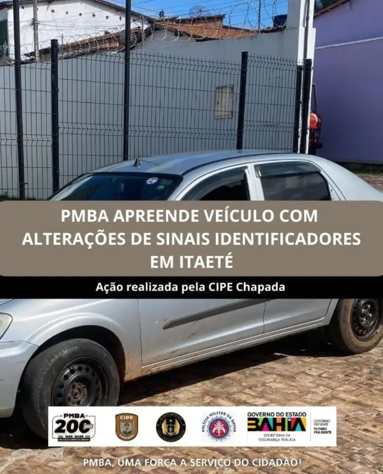 Na manhã desta segunda-feira (19), por volta das 8h, uma guarnição da CIPE Chapada apreendeu um veículo com sinais identificadores adulterados nas proximidades do Assentamento Rosely Nunes, zona rural de Itaetê, na Chapada Diamantina.
